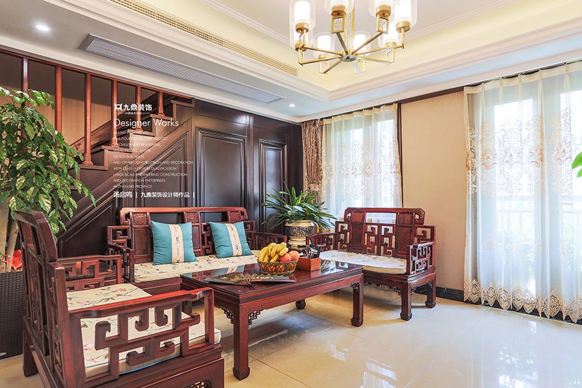 一樓的玄關要為整個中式風格奠定基調,“玄之又玄,眾妙之門”最早見于《老子》,書寫出空間的立體感,協調的玄關柜和柵欄調和出欲說還休,欲隱還露的含蓄情感。