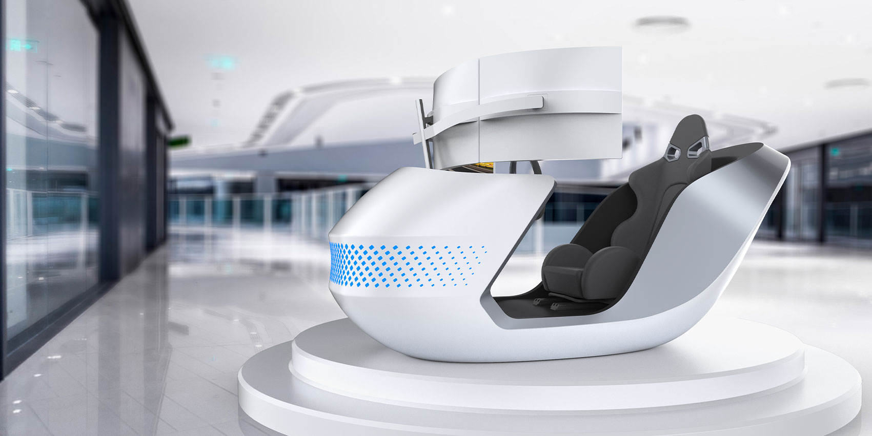 這款模擬駕駛艙造型靈感來自于天鵝,流線型設計賦予其優雅的外觀,同時也象征著駕駛的速度感與未來感,富有生命力。采用藍色點狀燈作為艙頭的裝飾燈,提升了設備整體的氛圍感。三屏液晶顯示器高度模擬賽車的真實環境,座椅能夠自動調整角度和支撐力度,給駕駛員帶來更逼真的駕駛體驗。