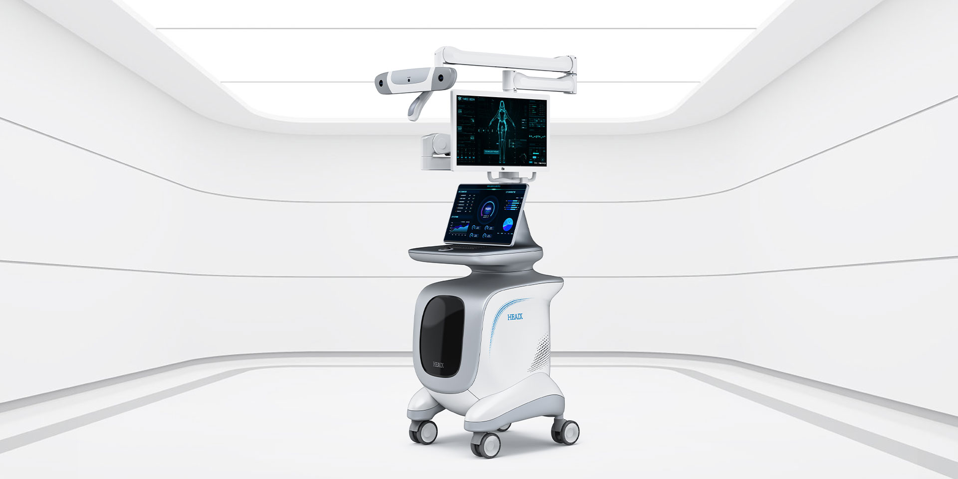 設備外觀以簡潔流暢的線條勾勒,白色為主色調搭配藍色裝飾元素,營造出專業、潔凈的醫療氛圍。整體設計緊湊,集成度高,能有效節省醫療空間,同時現代化的造型符合當下智慧醫療的發展趨勢,為醫療工作提供高效、便捷的支持。